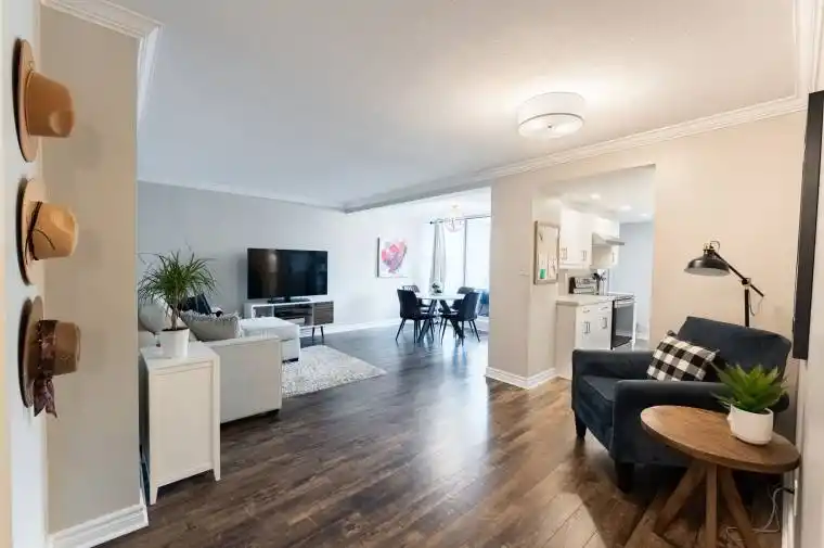 Discover the perfect blend of comfort and convenience in this bright 2-bedroom condo in the heart of downtown Burlington. With laminate flooring & crown-molding throughout, an updated kitchen and bathroom with quartz counters, this home is designed for modern, low-maintenance living, ideal for the down-sizer or first time buyer. Enjoy your private north-facing balcony with access from the dining and kitchen. All inclusive monthly condo fees, including cable TV and internet! Amenities include heated outdoor pool, Party Room, Gym, Wood-working room, library, green space, visitor parking. Short walk to downtown Burlington’s shops & restaurants, the lake, performing arts centre, Spencer Smith Park, Burlington GO & more!