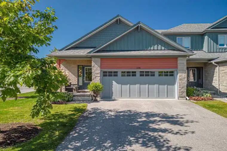 Welcome to 136 Conservation Way, Collingwood a beautifully upgraded end-unit bungaloft set within a quiet, friendly community designed for those who value both comfort and an active, recreational lifestyle. Step inside this tasteful, energy-efficient home and discover thoughtful upgrades throughout, including engineered wide plank floors and a modern kitchen with stainless steel appliances, granite countertops and a functional island. The inviting living room, complete with a cozy gas fireplace, opens onto a private patio with an electronic awning, the perfect spot for relaxing on warm summer days.The main floor primary bedroom offers a private retreat with a 3-piece ensuite, while the main floor also provides the convenience of a 2-piece bath and easy access to laundry. Upstairs, the versatile loft space is ideal as a family room or home office and an additional bedroom with a 4-piece bath ensures plenty of room for guests. The unfinished basement with oversized windows is ready for your personal design. Practical features include central air, central vac and a double garage with inside entry. This home is part of a welcoming community where residents enjoy access to a recreation centre featuring an outdoor pool, sauna and games room with billiards, air hockey, ping pong, darts and shuffleboard. Step outside to explore the nearby trail systems, ski hills, golf courses and waterfront that make Collingwood one of Ontario’s most sought-after four-season playgrounds. Whether you are looking for a full-time residence or a weekend retreat, this Wanderer floor plan bungaloft combines modern living, a prime location and endless recreational opportunities.