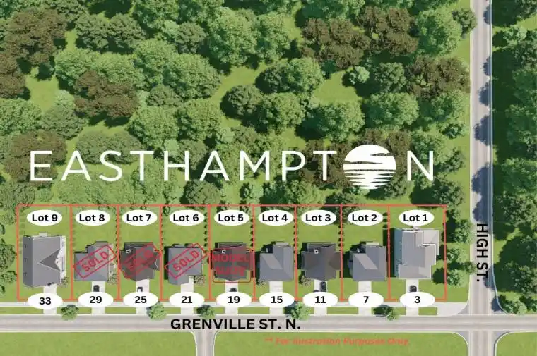 Welcome to Easthampton Development, where tranquility meets convenience! Nestled at the corner of High St and Grenville St. N, this vacant lot offers a serene escape. Located away from the hustle and bustle, yet within walking distance to downtown, 1.5 blocks to the newly renovated hospital and 2 blocks to the trails around Fairy Lake, this lot presents an excellent opportunity to build your dream home. Imagine waking up to the peaceful ambiance of a quiet neighborhood, where the only sounds you hear are the rustling leaves and birds chirping. A 20′ drainage easement running behind the lot will be tree-lined and provide privacy. Grenville St. N offers new curbs, sidewalk and asphalt making this street a pristine place to call home. Whether you choose to enlist Launch Custom Homes to bring your vision to life or pursue your own construction plans, this flat and level lot is ready for your design ideas. Southampton’s beauty surrounds you, offering a picturesque backdrop for your future home. Don’t miss out on the opportunity to own this fantastic building lot in Easthampton Development. Visit today and envision the possibilities of creating your ideal living space in this idyllic location.