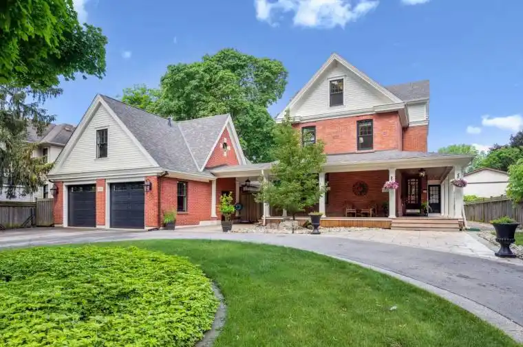 HISTORIC WILLIAM H. MORDEN CENTURY HOME CIRCA 1900 – WHERE TIMELESS CHARM MEETS MODERN LUXURY! Reimagined in 2012 through the award-winning collaboration of Gren Weis Architect, Whitehall Homes & Construction, Top Notch Cabinets, and Calibre Concrete, this residence was completely transformed with new plumbing, 200-amp electrical, insulation, fire-rated drywall, and high-end Pella and Kolbe windows and doors. At the heart of the home lies a stunning dream kitchen showcasing Gaggenau and Miele appliances, granite countertops, glass tile backsplash, illuminated display cabinetry, oversized island with breakfast bar, built-in desk, pantry, and dual French door walkouts to the backyard. The primary bedroom offers a walk-in closet and spa-inspired five-piece ensuite complete with dual sinks, soaker tub, and steam shower with body jets. The basement extends the living space with a cozy recreation room ideal for family movie or game nights. Additional details include hydronic radiant heated tile flooring, built-in ceiling speakers, and dual HVAC systems (Carrier central air units and hydronic plenum heat exchangers). A rare highlight is the lofted two-car garage (2015) with separate electrical panel and roughed-in hydronic slab heating, offering endless possibilities for a studio, office, or guest suite. Step outside to a professionally landscaped oasis designed for year-round entertaining. Enjoy a wraparound porch, custom deck, natural stone patio, 19′ x 36′ saltwater pool, perennial gardens, and a full outdoor kitchen equipped with Lynx appliances, woodburning fireplace, pizza oven, roll-down shades, and commercial-grade heaters. An inground sprinkler system and circular multi-car driveway add everyday convenience. Minutes from St. Thomas Aquinas, Appleby College, downtown, and the lake, this residence offers an elevated lifestyle without compromise.