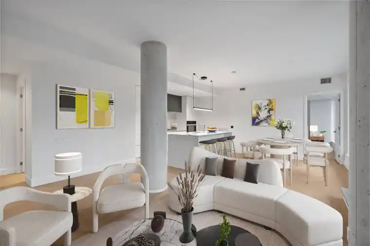 Experience refined urban living in this meticulously designed two-bedroom plus den, two-bathroom suite at 1414 Bayview Avenue. Perched on the sixth floor of a boutique building, suite 606 is a perfect blend of modern sophistication and timeless design. Spanning 1,225 square feet of interior space, the suite is thoughtfully laid out for maximum comfort and privacy with a split-bedroom floor plan and an additional private den. The open-concept living and dining areas are flooded with natural light through wall-to-wall west-facing windows, complemented by high ceilings and hardwood flooring throughout. The heart of the home is a custom Italian kitchen with Caesarstone countertops, a large centre island, high-end integrated Miele appliances designed for both function and style. Step out onto the expansive 600 sq.ft. terrace, perfectly elevated above the treetops for panoramic sunset views and seamless indoor-outdoor living. Both bedrooms offer tranquil west-facing views. The primary suite features a large custom walk-in closet and a spa-like ensuite with a floating double vanity, Caesarstone counters, a mosaic-tiled wall and walk-in rainfall shower, and a private water closet. The second bedroom boasts ample closet space. A versatile den makes for a perfect home office or nursery, a sleek 3-piece bathroom with floating vanity and walk in shower is conveniently located off the entryway, along with a laundry room complete with sink. The suite comes complete with two parking spaces and a large locker. 1414 Bayview Avenue is a boutique residence of just 44 luxury suites, known for its elevated design, smart layouts, and high-end finishes. Nestled in one of Toronto’s most sought-after communities, residents enjoy easy access to top-tier amenities, including restaurants, shops, parks, and trails, offering a balanced lifestyle of urban convenience and neighbourhood charm.