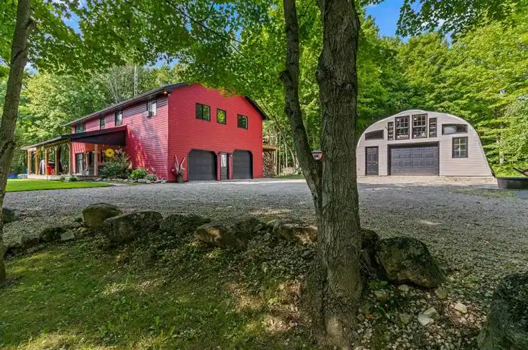 Looking for peace and tranquility, where the only sounds you hear are the birds gentle tweets? Then this home is for you! Through the winding lane leads you to the perfect private oasis with complete privacy 360 degrees. This stunning home was intentionally positioned to soak up the sun rays all day, and catch the sunsets each evening. 11+ acres of premium hardwood trees are not only beautiful, but provide maple syrup, top notch firewood and lumber for your next project. Inside soaring ceilings, an open loft layout and oversized windows bring light and beauty to the space. Stay toasty warm with in-floor heating throughout the main and lower floors. The upper level has 3 good size bedrooms including a primary suite with 4 piece ensuite and a private deck. The finished basement has an additional bedroom, beautiful bathroom and your very own Theatre Room with step up lounge seating and built in speakers. Explore nature and enjoy the land all year round. Walk, ATV or snowmobile through your private trails, or for longer adventures join the expansive conservation trails right off of your driveway. When it’s time to relax park your toys and head over to the Forest Retreat with Sauna Haus and Hot Tub to unwind from the day. Plenty of parking and storage is found in the oversized dbl garage with an extended door for trucks and boats. For additional storage, or the possibility to create additional living space, the Quonset Hut is insulated and prepped for in floor radiant heating (960 sqft). Extensive improvements have been completed since 2020 including: All new windows and doors, new water softener, 40 x 12 foot front deck, back deck, all new flooring throughout, 5 new appliances, 2 new bathrooms, new hot tub and many more! Located just 2 hours from the GTA, 25 minutes to Beaver Valley and 35 minutes to Blue Mountain, this home will make the perfect country retreat, or full time home!