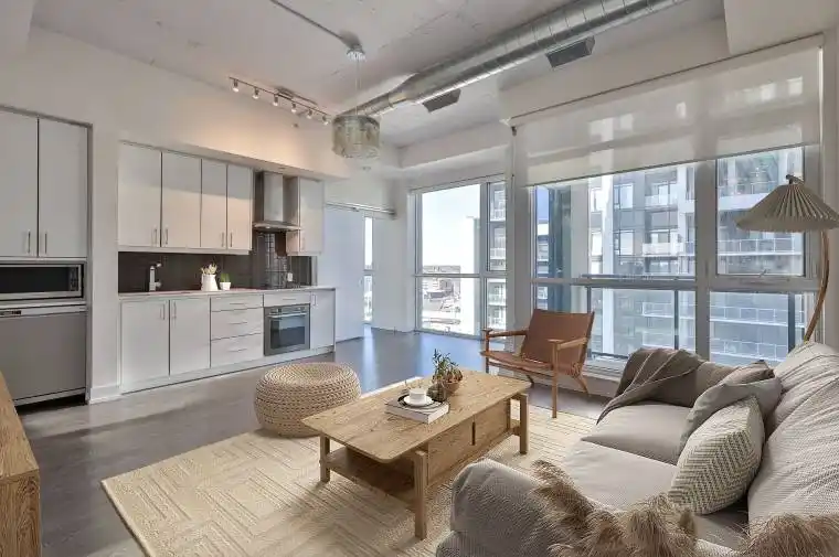 Fantastic opportunity in the highly desirable Liv Lofts! Rarely available, oversized 1 + 1 bedroom, 2 bathroom corner unit with. This functional layout boasts almost 800 total square feet, including the balcony. The unique loft design separates this unit from a typical high-rise condo with soaring 11 ft ceilings and floor-to-ceiling windows that bathe the unit in natural light all day long. Luxury meets convenience in the heart of Don Mills shopping centre, close to all the coffee shops, restaurants, patios, and cafes. Amenities Include a Fitness Centre, Party Room, Guest Suite, and Concierge. Comes with parking and locker.