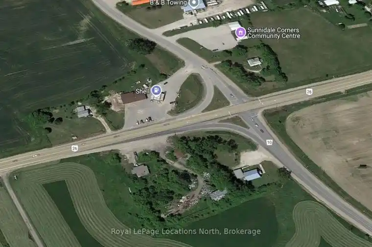 Located at the high-traffic intersection of Highway 26 and Concession 10, this cleared corner lot offers exceptional exposure and accessibility. Positioned directly across from Tim Hortons and beside an established Shell gas station and local diner, it sits at a strategic gateway leading into Collingwood, The Blue Mountains, Wasaga Beach, and Stayner.Zoned to support a wide variety of commercial and light industrial uses, the property is ideal for ventures such as restaurants, breweries or wineries, equipment sales and rentals, food processing, storage facilities, light manufacturing, research labs, laundromats, towing compounds, or home improvement outlets.With municipal backing for new commercial development along this major corridor, the lot presents an excellent opportunity for businesses seeking visibility in a high-growth area or investors looking for a prime long-term hold. Any of the following uses which are intended to be light industrial and accessory uses: Adult entertainment businesses; Assembly halls; Broadcasting and communication establishments; Commercial self-storage facility; Dairy products plant; Data processing centre; Dry light manufacturing, processing, repairing, fabricating and assemblyoperations; Food processing establishment; Home improvement outlets; Industrial laundromats and/or dry-cleaning establishments; Light equipment sales and rental establishments; Moving company; Warehouses; Printing or publishing establishments; Research establishments including laboratories; Restaurant; Towing compound; Wineries and breweries. Recently installed Well and Hydro at property line.