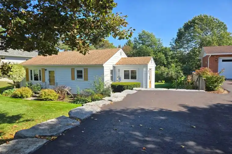 This neat and tidy bungalow has been home to the Seller for 20 years. It would also suit well as a cottage, with its beautifully treed and well-kept, private rear yard. The home has modern windows, bath and ductless heat pump heating and cooling system. Kitchen features updated countertop. All on one convenient floor. Driveway is NOT shared, but is adjoining and was paved in 2023 in a joint project with the neighbours. This could be an ideal home for 1st-time Buyers or empty-nesters.