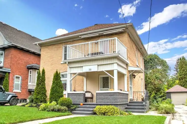 Lovely two storey brick Century Home just steps from Meaford’s inner harbour, local shops and restaurants and Meaford Hall – Welcome to 36 Nelson St. Currently functioning as a two unit dwelling or could easily be converted back to a single family home. Unit One has three generous bedrooms, one and a half baths, in suite laundry, large kitchen, living and dining rooms, a balcony and covered front porch. Unit Two is a one bed, two bath unit with large kitchen and living room. Outside, enjoy a rear deck, large yard and a detached garage. Many upgrades to interior finishes including engineered wide plank flooring on main floor, furnace (2021) and roof (2023 & 2025).