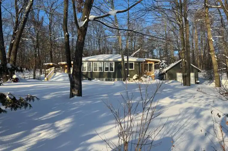 Deeded access to Buckhorn Lake. Renovated from top to bottom, this lovely home is located just 5 minutes from the town of Buckhorn. This little gem is located in a waterfront community and sits on a picturesque treed lot with obstructive lake views and sunrises. Featuring 3+1 bedrooms, 1.5 baths and a stunning functional kitchen with quartz counters, stainless appliances, and a large built in quartz table with storage beneath. Enjoy the spacious living area with an abundance of windows, hardwood floors, and a stone fireplace with propane insert. The lower level includes the 4th bedroom, rec room, and a large work area. An amazing screened in porch is perfect for large gatherings and a cozy sunroom is right off the kitchen for easy enjoyment. There is lots of decking, a hardwired generator, and a single car garage steps from the house. Located on a well-maintained year-round road just seconds to the Township road and school bus route.