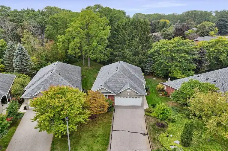 Welcome to 115 Glenwood Drive, Unit 7 a beautifully maintained freehold bungalow condo nestled in a sought-after enclave of just 31 homes in Brantford Ontario. Owned by the original owner, this brick residence is move-in ready and showcases pride of ownership throughout.Offering 2+1 bedrooms, 2 full bathrooms plus a convenient powder room, this home is ideal for those seeking a comfortable and low-maintenance lifestyle. The well appointed kitchen features a breakfast area and bar seating, with all appliances included, and flows seamlessly into a formal dining room and inviting living room with gas fireplace that opens onto a private exterior deck. Tiled and hardwood flooring extend throughout the main floor, adding to the homes warmth and charm. The spacious primary bedroom includes a private ensuite bath and walk-in closet for added comfort and convenience.The finished lower level extends your living space with a generous family room (complete with pool table), a private bedroom, a full bathroom, and a large utility room offering abundant storage.Additional highlights include a two-car garage, a large private driveway accommodating 4+ cars, and visitor parking nearby. Surrounded by mature trees and meticulous landscaping, the lot provides peaceful, nature-filled views and wildlife at your door. This well-kept complex is perfect for retirement or downsizing, offering a tranquil lifestyle close to Brantford’s many amenities, with easy access to Toronto and surrounding communities.A rare opportunity to enjoy privacy, space, and nature with the ease of condo living book your private showing today!