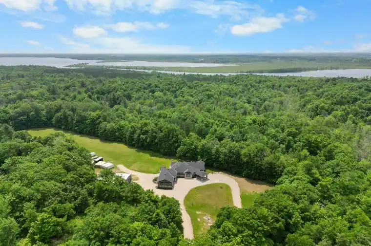 Experience ULTIMATE PRIVACY & LUXARY on over 40 acres of land. Welcome to this fully custom-built estate home, an extraordinary retreat designed to impress at every turn. As you approach via the private laneway, your greeted by striking armor stone landscaping and a beautifully designed interlock entrance, setting the tone for the elegance and privacy that awaits. The exterior offers everything you need for work, play, and leisure. A heated 5-car garage with drive-through access, warm/cold water supply, EV charging and direct entry to both the home and basement makes everyday living incredibly functional. A separate 2400sq/ft fully heated detached shop equipped with 200 amp service , water, bathroom, kitchen and a hoist is perfect for all your toys, tools, and ambitious projects. Enjoy a covered, vaulted outdoor dining/lounging area overlooking a saltwater pool accessible from every room in the home creating seamless indoor-outdoor living. Inside, the home exudes sophistication and craftsmanship. Expansive living spaces offer stunning views of the backyard and pool. The custom kitchen is a true showpiece, featuring high-end millwork, indoor bbq, 2 induction stoves, a large walk-in pantry with a built-in bar and second fridge, full door fridge and freeze- a true master piece. With 4 bedrooms (2+2) and 3.5 beautifully appointed bathrooms, every inch of this home has been thoughtfully designed for comfort and style. This is not just a home its a lifestyle. Truly custom. Truly unforgettable. See attachments for a full list of features and upgrades