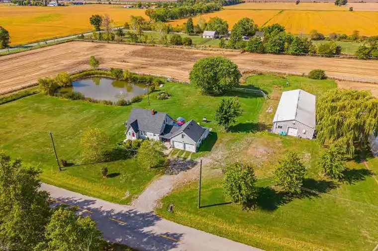 Escape to the country with this inviting 3-bedroom home on nearly 9 peaceful acres, complete with a 3,000 sq ft steel shop with hydro and water, where all interior posts are non-structural and can be fully removed to create a wide-open layout. This property is incredibly versatile whether you dream of equestrian pursuits, hobby farming, or simply enjoying open land, it can adapt to your lifestyle. The secure fencing makes it ideal for horses, goats, sheep, alpacas, or chickens, while the large greenhouse with irrigation system provides an excellent setup for gardeners and can easily be expanded. Recent upgrades to the home include California shutters, new flooring, modernized bathrooms, and roof improvements, making it move-in ready. The house also features a fully attached two-car garage with a 400 sq ft attic space, perfect for storage or a future loft conversion. Outdoors, entertain on the spacious two-tier deck or unwind in the gazebo overlooking the tranquil pond and fountain. Plus, annual hay production leases provide an added income stream. With its mix of functionality, charm, and endless potential, this property is ready to fit anyones vision of rural living.