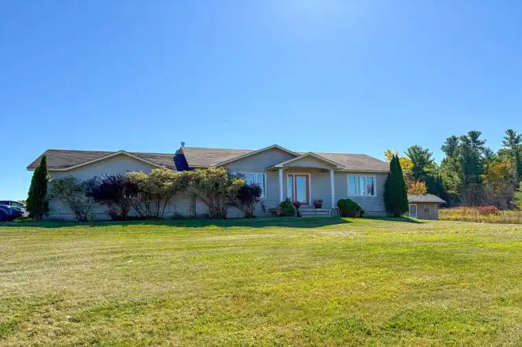 575 Brae-loch Road, Braeside, ON – Countryside Bungalow with Potential! Welcome to 575 Brae-Loch Road, a 2003 – built bungalow offering scenic privacy and room to make it your own. Situated on a quiet, paved country road surrounded by farmers fields, this property provides the peaceful setting of rural living while being just a 6-minute drive to Arnprior. The home features an open-concept kitchen and living area with a centre island and direct access to a small back deck, ideal for enjoying views of the countryside. The main floor includes two bedrooms and a full 4-piece bath. The lower level adds two additional good-sized bedrooms, a family room, and a laundry room that has been plumbed for a future second bathroom, complete with a tiled shower already installed. An attached double car garage adds everyday convenience. The main house roof was updated in 2021; the garage roof will require replacement.Outdoors, you’ll find a children’s play structure and a charming bunkie/playhouse, making this property a great spot for families to enjoy. This property is perfect for buyers looking to add value with some TLC while enjoying a private country setting close to town.