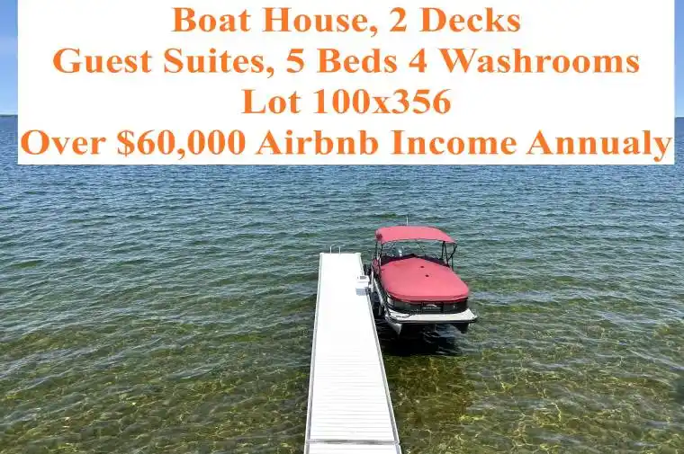 *** Lakefront Luxury & Income Potential *** Make sure you watch the video. The Seller is running an Airbnb business part-time and makes EXTRA $60000 + annual income! Discover the perfect blend of lifestyle and investment at this stunning waterfront property. With 5 bedrooms and 4 bathrooms, BOAT HOUSE and Private DOCK, this spacious home offers exceptional comfort, flexibility, and opportunity. Soaring Vaulted ceilings and large windows fill the home with natural light, while 2 expansive decks provide the ideal setting for outdoor entertaining or quiet relaxation with breathtaking lake views. A standout feature is the private guest suite above the boathouse. Proven Airbnb income generator or the perfect retreat for family and friends. Whether you’re seeking a full-time residence, a weekend escape, or a smart investment, this property delivers. Located just minutes from prestigious golf courses and a couple of charming local vineyards, it offers not only a luxurious lifestyle but also strong short-term rental appeal. Enjoy lakeside living and earn extra income. Your dream home and investment in one!! Schedule your private tour of 25220 Maple Beach Rd today!