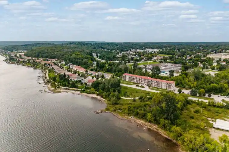 Welcome to this charming 1 Bedroom + Den, 1 Bathroom ground floor condo offering the perfect blend of comfort, convenience and nature. Nestled in a low-rise building with some water views of Georgian Bay, this unit provides a peaceful retreat while still being close to all amenities. Step inside to find a bright and functional layout with an inviting living area that flows seamlessly into the dining and kitchen space. The den offers flexibility perfect for a home office, reading nook, or a guest area. The spacious bedroom provides comfort and privacy, while the full bathroom is stylish and well-appointed. Enjoy the convenience of ground-floor living with direct access, no elevators needed and own private parking space included. Step outside and you’re just a short walk to scenic trails, ideal for morning walks, cycling, or simply taking in the natural beauty of the waterfront. This condo is rare find – whether you’re a first-time home buyer, downsizer, or investor looking for a lifestyle property, this one checks all the boxes.
