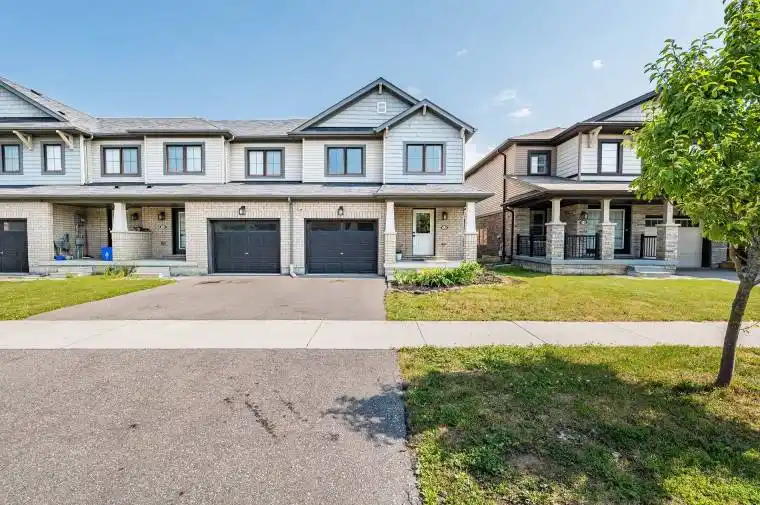 Welcome to 12 Bradshaw Drive! Rare and stunning End-Unit Townhome (Chelsea Model) offering over 2300 sq ft of functional living space in the heart of Stoney Creek. This bright and spacious 3+2 bedroom, 4 bath home features extra windows for abundant natural light, an open-concept main floor with upgraded kitchen cabinetry, stainless steel appliances, breakfast bar with double sink, modern fireplace, hardwood floors, pot lights, main floor laundry and interior garage access. The primary suite offers his & hers walk-in closets and a 4-pc ensuite with glass shower and soaker tub. Fully finished basement includes 2 bedrooms, 3-pc bath, living area and rough-in for a kitchen perfect for in-law or multigenerational living. Freshly painted throughout with upgraded oak staircase, cleaned ducts, fully fenced backyard. Conveniently located near Schools, Parks, Trails, Hamilton Soccer Club, Heritage Green Sports Park & Dog Park, Conservation Area, Beach, Shopping, Major Highways (QEW, LINC, RHVP) and Confederation GO Station++