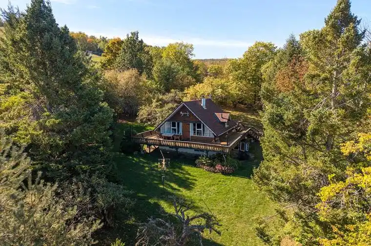 Rarely offered live on the slopes of Alpine Ski Club! This original ski-in/ski-out chalet is bursting with original alpine charm and offers a lifestyle few ever experience. Nestled on an expansive 0.9 acre lot, this property provides direct access to the hill along with the convenience of exclusive private parking at the Club. Enjoy four seasons of recreation and relaxation: ski from your door in winter, hike the escarpment in spring, take in the vibrant fall colours, or spend summer days at nearby beaches on Georgian Bay. The wrap-around porch is the perfect vantage point to soak in stunning water views across the Bay and watch the activity of the slopes. This is a unique chance for Alpine Ski Club members to secure a true slope side property ideal for creating a family retreat, seasonal getaway, or simply enjoying as-is with all the cozy character of a classic chalet. Or, build to suit on the footprint of 800 sq ft and design your dream chalet right on the hill. Opportunities like this are few and far between at Alpine Ski Club.