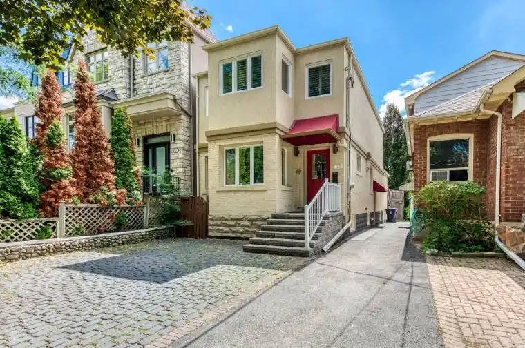 Contemporary and timeless family sized home with beautiful curb appeal on coveted Melrose Ave. Steps from Yonge/Avenue & Lawrence. Meticulously maintained, freshly painted, wonderful layout with an abundance of natural light in each room. Open concept living and dining room with hardwood floors, pot lights and 2 pc powder room. Newly updated sun-filled kitchen with stylish backsplash quartz counters, centre island, ample counter/prep-space, tons of storage and vaulted ceiling. An open family room that is combined with the kitchen features built-ins and overlooks a gorgeous, fully fenced and landscaped backyard with large deck, in-ground pool, mature trees and garden. Upstairs, you’ll find a large skylight, three spacious bedrooms and two full baths. The primary bedroom features refinished hardwood floors, walk-in closet, sitting area and ensuite bath. The finished basement features slate flooring, a recreation room, 4th bedroom with built-ins and 3pc bath which makes a terrific nanny suite. European style cobblestone landscaping at the front with parking for one vehicle. Plenty of storage inside the home, as well as clever backyard storage.