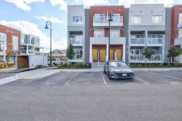 Welcome to 34 Vitality Drive, a bright and stylish corner stacked townhouse in the heart of Kitchener’s sought-after Huron Park community! This beautifully designed 2-bedroom + den, 3-bathroom home offers a perfect combination of comfort, functionality, and modern elegance ideal for young professionals, families, or investors seeking low-maintenance living in a thriving neighbourhood. Step into the main floor and be greeted by an expansive open-concept layout featuring a sun-filled living and dining area, private balcony, and a modern kitchen with stainless-steel appliances, quartz countertops, subway-tile backsplash, and a large island ideal for gatherings and casual dining. A spacious den on this level provides an ideal space for a home office or creative studio, while a convenient 2-piece powder room completes the floor. Upstairs, discover two well-appointed bedrooms, each offering ample natural light, generous closet space, and ensuite access. The primary suite features a walk-in closet and a 3-piece ensuite with a glass-enclosed shower, while the second bedroom enjoys a 4-piece bath with tub. Thoughtful details include in-suite laundry, energy-efficient systems, and 1 dedicated parking space for added convenience. Situated in one of Kitchener’s fastest-growing areas, this home is steps to Jean Steckle PS, Schlegel Park, RBJ Schlegel Sports Complex and close to Seabrook Park, Sophia Park, and scenic walking trails. Just minutes to Highway 7/8 & 401, shopping, dining, and public transit. Low condo fees include Bell 1 GB high-speed internet, offering exceptional value. Experience modern living, abundant light, and unbeatable location 34 Vitality Drive welcomes you home!