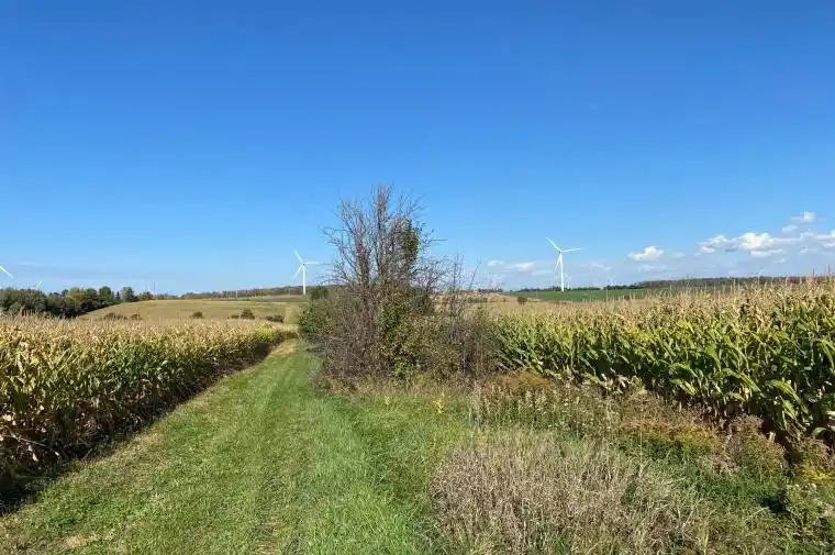Approximately 94 agricultural acres for sale in Bruce County west of Highway 21, between Tiverton and Port Elgin that consists of approximately 65 acres cropland (believed to be Elderslie Silty Clay loam but buyer will need to verify) , approximately 25 acres mixed hardwood bush and approximately 4 acres Environmentally Protected (EP) zoning along 2 small creeks that cross the property. Sellers wish to sell to a buyer who will qualify for a surplus farm dwelling severance. Upon an accepted Agreement of Purchase and Sale with the severance as a condition, the sellers will commence the severance application to allow the home, small workshop and approximately 3 acres (not part of the approximately 94 acres listed) to be retained by the Sellers. This is not only an acreage of cropland and bush but the property still has history of the original farm. There is an easy central access laneway, from the concession to the back of the farm that crosses the 2 creeks and passes by the original home’s location where the partial barn foundation remains with a healthy grove of Pine trees and possibly an old dug well near the foundation. The current home to be severed is located on the north west corner of this farm. Excellent opportunity for a buyer or buyers who are looking to diversify their operations by adding to their crop acreage and enjoying a bush for wood management or recreational enjoyment. Crop rotation of soybeans and corn has been tenant managed. Possession will be determined when details of severance is available and buyers, sellers and tenant have determined an arrangement for the crops. Phased-in assessment information (2025) includes the entire farm as the listed property has not been assessed separately. There are no windmills on the listed property. (windmills in photos are on near-by properties).Sellers will consider selling land and home, see X12474852, as long as sellers may continue to live in the home for as long as they wish at free rent.