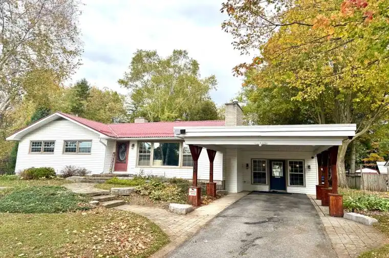 Fall in love with this stunning open-concept bungalow. With over 2,673 sq. ft. of living space, , thoughtfully designed for style, comfort, and versatility complete with a newly renovated in-law suite on the lower level. Inside, youll find an elegant custom fireplace, modern kitchen and bath with quartz countertops, and gorgeous hardwood floors throughout. The bright, open layout features a large island perfect for entertaining family and friends.Enjoy the best of both worlds just 15 minutes to Wasaga Beach and 15 minutes to Collingwood ski and snowboard hills, with coffee shops, trails, and local amenities all close by.Perfect for professionals or business owners, the home offers parking for 10+ vehicles and a spacious executive office with custom cabinetry, cork flooring, a cozy fireplace, and large windows. The main level includes three generous bedrooms, while the finished basement adds an additional bedroom with ensuite and brand-new kitchen ideal for guests or multi-generational living.Step outside to your private, tree-lined backyard oasis, featuring a hot tub, modern landscaping with armour stone, and a front yard in-ground sprinkler system.Extras: metal roof, $20K custom fireplace install, in-floor heating, entertainers kitchen, oversized treed lot, and brand new security camera system and tons of natural light throughout. With over 2,500 sq. ft. of living space, this home truly has it all.