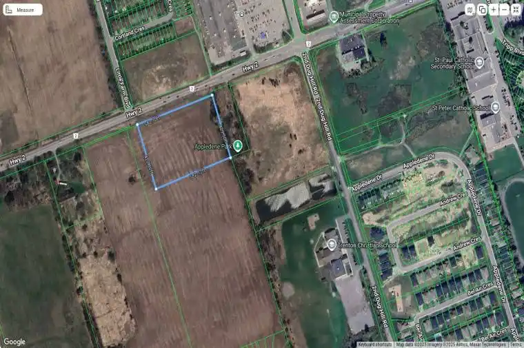 Excellent opportunity to acquire approximately 5.5 acres of flat, clean land located in the heart of Trentons main commercial corridor in Quinte West. This prime parcel is ideally situated directly across from Walmart and several major retail establishments, offering outstanding exposure and accessibility. The property is surrounded by established and expanding residential developments, placing it in a high-demand growth area with strong future potential.The surrounding lands have been included in approved and official municipal plans for continued development, making this site ideal for commercial, mixed-use, or residential projects. Its strategic location within a thriving commercial district and proximity to major roads, services, and amenities make it a rare opportunity for developers and investors seeking to capitalize on the regions rapid expansion. This property is ready for development and offers exceptional long-term potential in one of Quinte Wests most active growth zones.