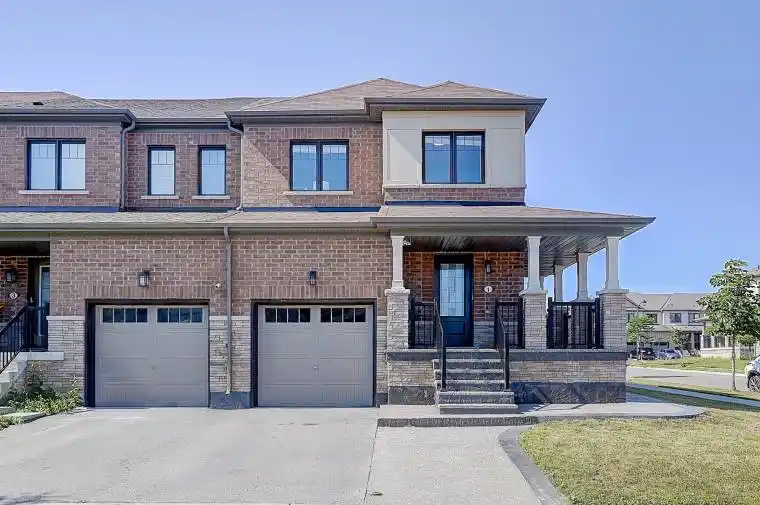 With nearly $80,000 in upgrades since June 2023, this 1,680 sq. ft. freehold corner townhome offers great value on a premium lot. Built in 2018, it features a timeless stone and brick exterior with a charming wrap-around porch. Ideally located near highways, GO Station, parks, and amenities.Inside, the bright open layout features engineered hardwood floors (2023), a modern kitchen with quartz countertops and backsplash(2023), and stainless steel appliances (2023, all under extended warranty).The spacious primary suite includes a walk-in closet and a sleek ensuite with soaker tub and glass shower. All bathrooms have been updated with quartz counters and dual-flush toilets.Additional highlights:Main-floor laundry with washer and dryer, Central A/C, stained staircase, and energy-efficient front door (2023) Outdoor upgrades: fully fenced yard (2023), exposed aggregate concrete(2023), and perennial garden (2024). Stylish, move-in ready, and in a prime location, this home is not to be missed.