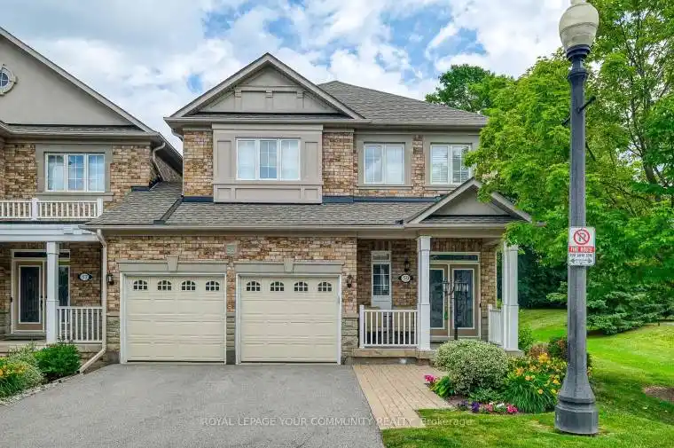 Looking for a safe community to live in then this Executive Townhouse in the Gated Community of “Stonebridge Estate.” is the answer. Located on approx. 50 acres in a tranquil wooded setting, surrounded by golf courses, Oak Ridges Moraine, close to shopping, hospitals, highways and much more. The townhouses are joined only by the double car Garages. This upgraded end unit with an open concept main floor has many upgrades. Some of the enhancements include the following: the renovated kit with w/o to extended patio, extended white cabinetry, center island seats 2. The Great room is extremely bright with a gas fireplace, crown moulding, and overlooks the backyard. Formal Dining with its cathedral ceiling, crown moulding and motorized drapes. Hardwood floors in both the Great Room & Dining room. Separate laundry area with double closet, 2pc powder room and access to double car garage. 2nd Flr has hardwood flooring throughout. Primary bdrm: renovated 5pc bathroom with separate shower, heated bathroom floor, double sink, walk-out to east view balcony to see fantastic sun rises, ceiling fan, walk-in closet with closet organizers, crown moulding, pot lights and electric fireplace. 2nd & 3rd each have double closets, hardwood floors. Renovated 4pc bathroom on 2nd floor. The basement consists of 3 areas: recreation area, bar area, office and a 3-piece bathroom. Separate are for furnace room which includes shelves. There are also lots of separate storage areas and a clod cellar. LOOKING FOR A LIFESTYLE CHANGE OR A PLACE TO FEEL SECURE AND SAFE? THIS IS THE PROPERTY TO SEE.