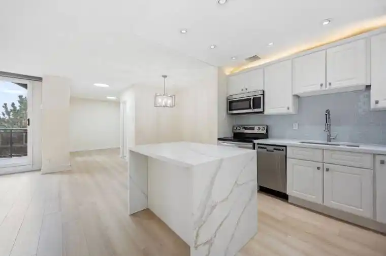 Sundrenched, west facing two story condo. Renovated top to bottom, including two new heat pumps. 3 Bedrooms, 2 bathroom unit with two large sun filled terraces with room for BBQ. New Quartz Countertops and breakfast island, New stainless steel appliances. New scratch proof floors, Renovated bathrooms. Large bedrooms with large closets. En-suite laundry room on second floor with storage. Amenities Include: Indoor Pool, Billiards Room, Party Room, Play Ground. Fantastic location, steps to shopping, restaurants, transit and future subway extension. Includes one parking. All Inclusive Maintenance fee: includes all utilities (hydro, water gas), cable and high speed internet!