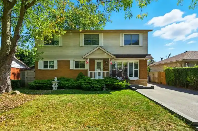 A must-see for growing families or multi-generational living in South East Burlington, offering over 3,200 sq ft of beautifully finished living space and a unique, versatile layout. The main floor features a bright living area, an updated eat-in kitchen with quartz countertops and island, three spacious bedrooms, and a renovated 3-piece bath with walk-in shower. The second level offers a separate living space with its own kitchen, dining area, gas fireplace, two bedrooms, and a modern 3-piece bath-perfect for in-laws, guests, or a nanny suite. Enjoy the four-season sunroom with a cozy gas fireplace, a finished basement with pot lights for added flexibility and ambiance, and a private backyard oasis with saltwater pool, cabana, and new deck. This home features three gas fireplaces and numerous upgrades, including a pool liner (2023), sand filter (2020), heater (2018), pump (2017), roof (2018), windows and front door (2017), furnace and A/C (2016), and driveway (2022).