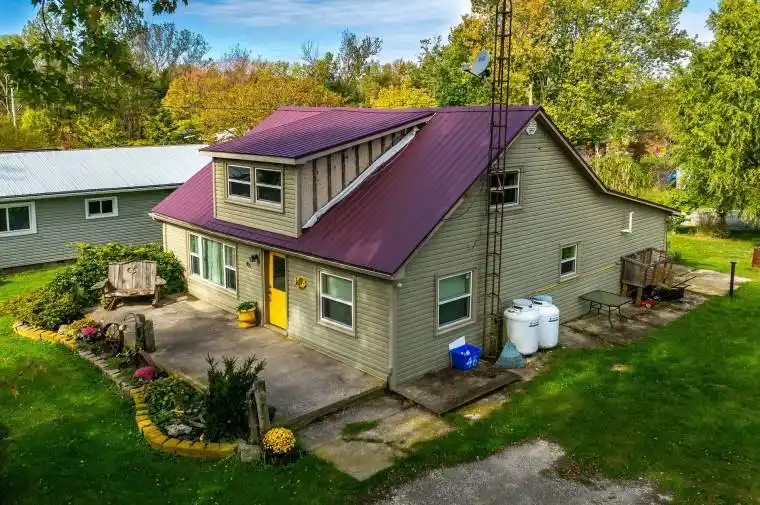 Spacious home with 3+2 bedrooms and 2 full bathrooms, on a 100x100ft lot located in a Lakeside community just 10 minutes to Dunnville. This 1849 square foot home needs a little bit of love – but overall it offers an affordable place to raise a family – where peace and quiet is a daily occurrence! Main floor offers large living room, two bedrooms (one of them is in an unfinished state), full bathroom, kitchen, utility room and a space at the back that was a hair salon. Upstairs offers 3 more bedrooms, and a large landing which would be a great family room area, plus a 3 piece bath. Outside the house is clad in vinyl siding, and a metal roof. Great front porch for relaxing and watching nothing go by. Detached garage plus cool treehouse for the kids. Services include propane gas, a cistern and a well, plus bonus full septic bed here. All windows are vinyl, and includes a forced air propane fired furnace. Property includes a right of way to Lake Erie for fun with the family! Located on a school bus route. Dunnville offers all amenities including hospital, schools, parks, churches, shopping and great restaurants. Home is located on a private road – maintained by the local community.