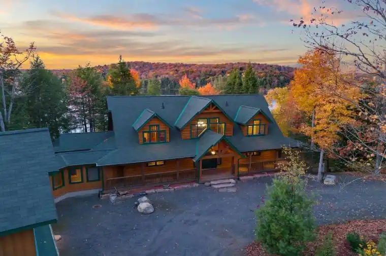 Impressively magnificent custom-built log home (True North – 4,560 sf ft) and over-sized, triple-car garage with a 2-bedroom guest loft on 8+ acres with 500+ feet of shoreline PRIVACY + 90′ dock system! Pride of ownership, care and maintenance of the buildings and property are quite evident, as one explores this special listing on the south shore of Kawagama Lake, the largest lake in Haliburton with 240′ of depth which supports lake trout & bass. This winterized log home is quite visually-striking with features that include its King Post designed entrance, lofted great room with a floor-to-ceiling granite stone fireplace, hardwood + pine flooring and pine accents throughout. The living area is an open concept and shared with a custom-designed kitchen and dining area with walkout to a screened-in gazebo area. The cottage has once slept 16 people and has 6-bedrooms and 4 bathrooms. The basement is finished with in-floor radiant heating and has a lakeside walkout on the ground level. Heated/covered breezeway from main dwelling to the garage/guest quarters. Drilled well, 2 septic systems (i.e. main cottage/home and for the guest area above the garage), geo-thermal heating & cooling system via lake water, backup generator, security system, high-speed internet, etc. The spacious primary bedroom is on the main floor and boasts a sunrise, soaking/jet~streamed Azzura tub, 5-piece bathroom, extra insulation in ceiling and wall for sound reduction and walk-in closet. Beautifully landscaped with granite rock stairs to the lake and a separate trail for an ATV or golf cart. Granite rock designed, outdoor fire pit, located under dark skies, bright stars and planets above. There is a vast network of trails on crown land nearby for hiking, ATVing, snowshoeing, snowmobiling and so much more! Convenient 4-season road access. This fantastic property is located just under 3 hours from Toronto. The SUNSETS and calls of loons, wolves and owls are FREE!