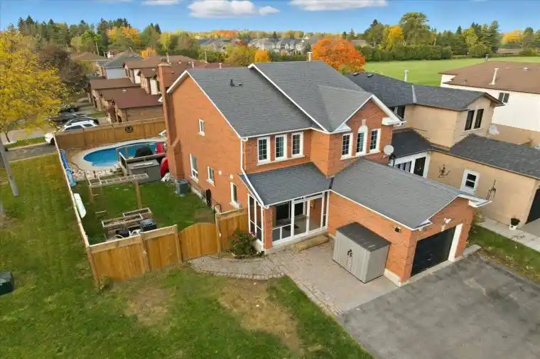 Spacious 4 Bedroom 4 Bathroom Brick Home with Heated Inground Pool on Quiet Cul-De-Sac. Welcome to this rarely offered, beautifully maintained linked property located on a quiet cul-de-sac across from a charming parkette. This spacious corner-lot home features 4 bedrooms, 4 bathrooms, and a full finished basement-offering room for the whole family and ideal space for entertaining. Key Features: Heated inground pool with 2-tiered deck (heater & filter 2022, pump 2021, liner 2023) Updated kitchen cabinetry (2015) and hardwood flooring in kitchen/family room (2018) Newer 3-pc bath in basement (2025) and new fence (2023) Shingles & windows (2009), furnace & AC (2010) Main floor family room with gas fireplace and real wood-burning fireplace in dining area. Bright kitchen with ample cupboard and counter space, Main floor laundry with direct access to garage, Finished basement with additional bedroom, 3-pc bath, and gas fireplace. Newer glass-enclosed mudroom at front entrance, 3-car parking, extra side yard, and corner lot privacy. Prime Location: Walking distance to parks, schools, and transit. Minutes to shopping, 401 & 407 access. This is the perfect family home with space, updates, and charm in a sought-after neighbourhood. Don’t miss your chance to own this entertainer’s dream! (SqFt as per MPAC Report, Room Measurements as per Photographer)