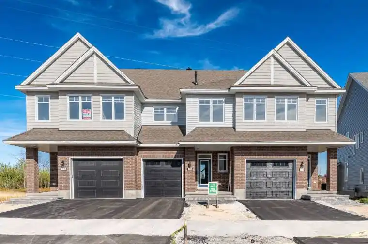 The Abbey model offers 1,855 square feet of finished stylish living in Kingstons West Village community. The main floor showcases maple hardwood, a modern kitchen with quartz counters, white shaker cabinetry, an upgraded sink, and a spacious walk-in pantry. A cozy gas fireplace anchors the living area. Upstairs, the primary suite includes a luxurious 4-piece ensuite with a freestanding tub and a walk-in tile-and-glass shower. The home also features a finished walkout basement with a rough-in for a future bathroom, giving you plenty of extra living space and flexibility. ENERGY STAR certified for efficiency, this home is close to the Rio Can, Cataraqui Centre, new schools, and parks.