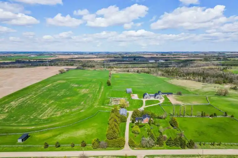 An outstanding opportunity to own a fully equipped and remarkably versatile 94+ acre farm, ideal for equestrians, hobby farmers, or those seeking a productive agricultural operation. With 65 acres in active crop production and an additional 15 acres of pasture, this property offers the perfect blend of functionality, beauty, and long-term potential. At its heart is a 3-bedroom century home full of character and country charm. Surrounding the house is an impressive array of outbuildings tailored to both equine and general farming needs. A few of the many standout features of this fantastic property are the 14-stall horse barn with a heated tack room, a 1/2 mile training track, and a run-in barn for added flexibility. The features continue to impress with a 60′ x 30′ drive shed/workshop with hydro and two heated rooms, a 85′ x 29′ storage shed, two additional storage sheds attached to the run-in, and five wood-fenced paddocks. A heated and air- conditioned 58′ trailer with a 2-piece washroom provides a comfortable on-site office or bonus space that could easily be converted into a fully self-contained living space. Set on gently rolling land, this farm boasts wide-open views of hayfields, woodlands, and horizon-stretching skies. Whether you’re training horses, growing crops, or simply embracing the rural lifestyle, the facilities and setting make this property truly turn-key. This is more than a farm – it’s a foundation for your next chapter in country living.