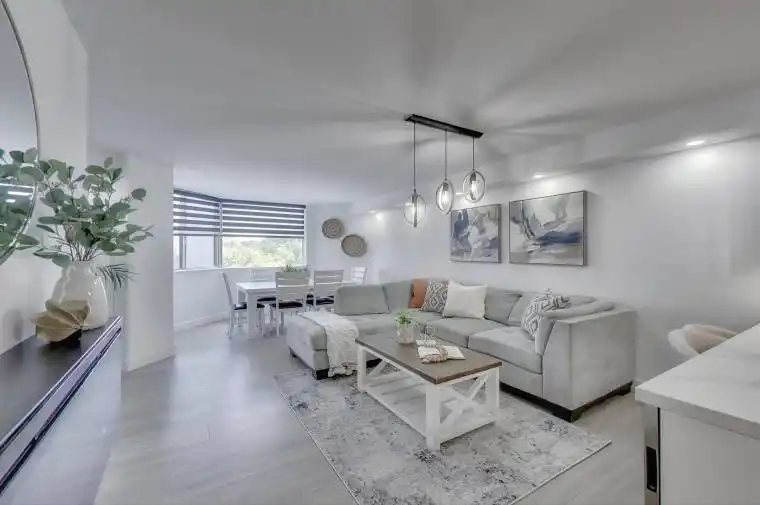 Completely Renovated to Perfection – This stunning 3-Bedroom + 2-Bath unit is a fully loaded, 5-star showpiece that will exceed your expectations and check every box imaginable. From the moment you walk through the door, you’re greeted by an abundance of natural light, stylish finishes and generous storage. The opulent custom designed kitchen features golden hardware, sleek white porcelain floors, quartz countertops, a peninsula with undermount double sink and globe pendant lighting to set the mood for entertaining. Enjoy premium stainless-steel appliances, including a wide Samsung fridge with ice and water dispenser, built-in microwave, dishwasher, and two under-counter bar fridges for wine and beverages. The peninsula overhang offers seating for casual dining, all overlooking the beautifully appointed open-concept living area with wide plank laminate floors, modern baseboards and doors, smooth ceilings throughout, pot lights, and walk-out access to a spacious private balcony on the quiet north side of the building. Both bathrooms are luxuriously modern with LED mirrors, while all bedrooms offer ample space, closet organizers, and a large primary with a private 2-piece ensuite and walk-in closet. Entry hall closets provide additional storage, and the ensuite laundry room boasts full-size machines with extra space for organization. All-inclusive maintenance fees make life and budgeting simple – with no surprise bills to worry about. This home is the perfect blend of elegance, comfort, and functionality – come see it to believe it!