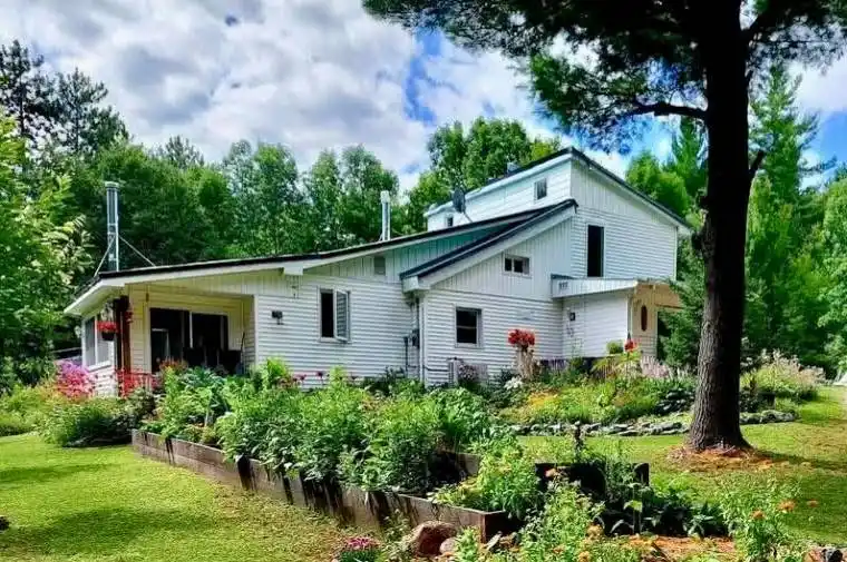 Executive Lease Opportunity. Position your lifestyle in a country haven that blends modern comfort with timeless charm. Newly renovated in 2017, this 1500 sq. ft. home showcases soaring ceilings, hand-hewn beams, and hardwood floors that reflect quality craftsmanship. The home features open concept kitchen, living, dining; 3-pc bath and two bedrooms; a spacious upper retreat, and a cozy lower-level room ideal for guests, a home office, or a creative workspace. A combination of heat pump, woodstove, and cookstove ensure year-round comfort and efficiency. The sunroom and expansive decking invite morning coffee, summer entertaining, or quiet evenings beneath the stars. Outdoors, the property offers a true rural sanctuary. Perennial gardens, and fruit trees enhance the pastoral charm, while the regular presence of wildlife provides a daily reminder of the beauty of country living. Located on a year-round municipally maintained road and a school bus route, the property offers both serenity and convenience. Situated in the scenic Boulter Hills, it lies equidistant from Bancroft and Barry’s Bay and is minutes from the Conroy Marsh Conservation Reserve, Foster Lake Beach, and OFSC snowmobile trails. This exceptional lease opportunity is presented as one of two completely separate private dwelling units that share access to the acreage and greenhouse, yet each having its own driveway, parking area, raised garden beds, and firepit, providing privacy and functionality in harmony with nature. The home appeals to discerning, qualified tenants seeking a refined rural lifestyle. Ideal for a small family, professional, or anyone desiring a private retreat surrounded by nature. Private tours are available by appointment only to prequalified lessees.