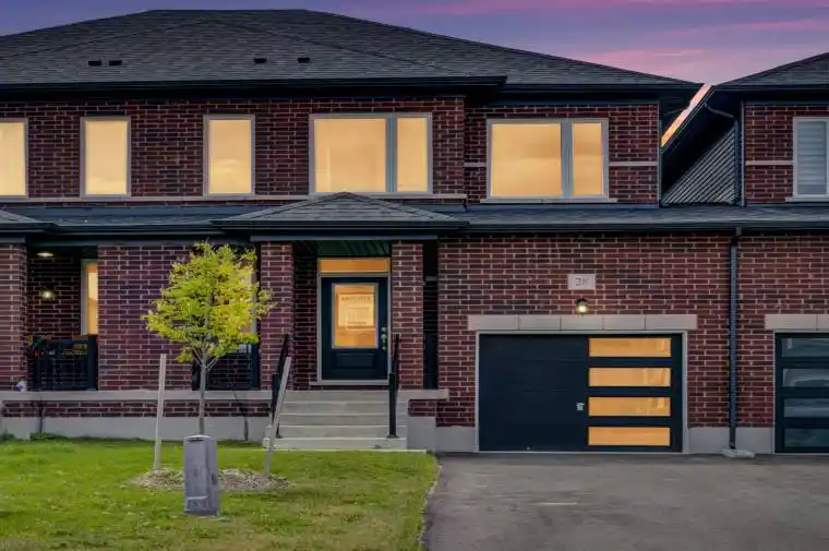 Welcome to 28 Autumn Drive in the Villas of Upper Wasaga – a beautifully finished Amber Model freehold townhome by Baycliffe Communities, offering 1,734 sq. ft. of thoughtfully designed living space. Move-in ready and never lived in, this 3-bedroom, 2.5-bath home combines modern comfort with low-maintenance living in a sought-after Wasaga Beach location. Step inside to 9-foot ceilings, wide-plank engineered hardwood, and a solid oak staircase with elegant wrought iron spindles. The open-concept main floor flows seamlessly from the upgraded kitchen – featuring quartz countertops, soft-close shaker cabinetry with glass uppers, and an oversized island – into the bright dining and living areas, ideal for everyday living and entertaining.Upstairs, the spacious primary suite includes a walk-in closet and a private 4-piece ensuite with double sinks and a tiled shower. Two additional bedrooms, a full bath, and convenient upper-level laundry complete the space. The unfinished basement offers flexibility for storage or future finishing. Tarion Warranty included. Ideally located close to schools, shopping, trails, and the world’s longest freshwater beach – and just 15 minutes to Collingwood and 20 minutes to the town of Blue Mountains – this property is perfect for full-time living, a weekend retreat, or a smart investment in one of Ontario’s most desirable beach towns.