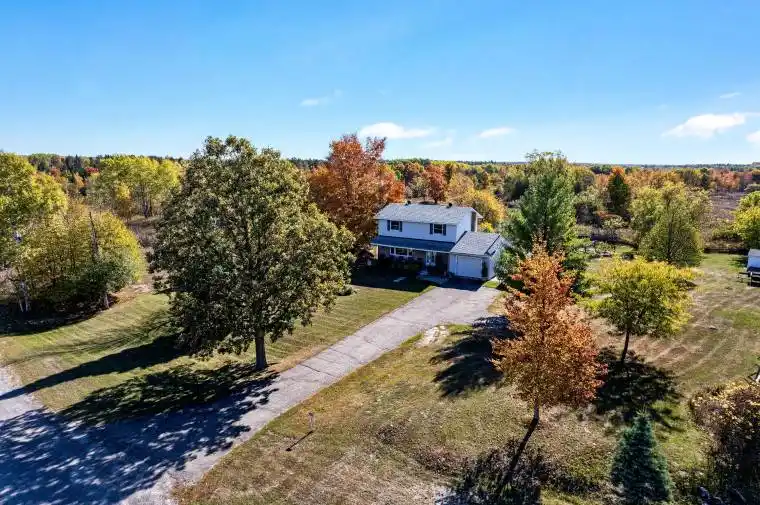 Peaceful country setting for spacious family home on one acre, professionally landscaped by horticulturalists. Every detail of the yard is gracefully designed with vibrant perennial gardens, mature trees and flowering shrubs – creating inspiring outdoor living spaces. Adding to the landscape charm is cedar rail fencing that borders the back and sides. Beyond the fence are pastoral meadows, that were in hay for over 25 years. The 3 bedroom, 2 bathroom home has welcoming front entry with side glass panel to let the sun shine inside. Foyer ceramic floor and convenient double closet. Livingroom huge wide window overlooking the gardens. Dining room also has large window for more natural light and garden views. Patio doors open to deck with BBQ hookup. White bright kitchen full of storage including two tower cabinets with large pull-out drawers; the sink overlooks gorgeous backyard and tranquil countryside. Main floor powder room. Combined mudroom and laundry room with door to attached garage. Second floor offers extra-large primary bedroom that was two bedrooms and now, renovated to a generous light-filled primary. Two more comfortable bedrooms and luxury 4-pc bathroom with heated slate floor, ceramic vanity, two-person soaker tub and shower with full-body spa spray. Lower level family room, recreational room and combined hobby/utility room. Attached garage-workshop has workbench, hot & cold hose bibs plus two 240V outlets. This home is well maintained with many upgrades. Roof shingles 2019. Furnace and central air conditioner both 2019. Generac, auto connect, included. Updating carpets to hardwood or luxury vinyl in main living areas will allow you to add your own personal touch and also increase equity of your home. Driveway paved. Hydro wires are underground from road to home. Bell internet & cell service. On quiet township maintained road with mail delivery & school bus pickup. Added bonus is the location, just 20 minute drive to Perth, Carleton Place or Almonte.