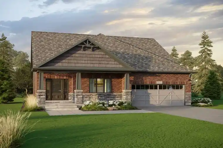 Built by Devonleigh Homes in the sought-after Woodstream community, this thoughtfully crafted Glasgow floor plan bungalow blends style, comfort & functionality. The exterior showcases a timeless neutral palette of brick, stone & vinyl siding, complemented by a charming covered porch entry that sets a welcoming tone. Inside, a spacious foyer with a large closet leads down a diagonal hallway, creating a sense of privacy before opening to the home’s primary living spaces. The open-concept kitchen, living & dining area is bright & inviting, designed for both relaxed family living & effortless entertaining. The kitchen features the new island design, offering extra workspace & seating, with sightlines that connect seamlessly to the dining area & living room. From here, sliding doors open to the rear yard, ideal for outdoor dining or enjoying the peaceful views. Convenient inside access from the double car garage flows through the combined mudroom & laundry room directly to the kitchen, perfect for busy households. The spacious primary suite offers a walk-in closet & a 3-piece ensuite, creating a private retreat at the end of the day. A guest bedroom is positioned near the front of the home, accompanied by a 4-piece bathroom for added comfort & convenience. The unfinished lower level provides ample opportunity for future living space, a recreation room, or hobby area. Situated on a premium pie-shaped lot backing onto coveted greenspace, this property offers exceptional privacy & a beautiful natural backdrop, an ideal setting for easy, modern living.
