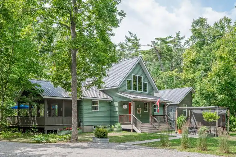 Just steps or a short bike ride from COMMUNITY CENTRE, Sturgeon Lake Sailing Club and standout children’s playground this spacious 2,000 square foot contemporary home offers vaulted ceilings, an abundance of natural light, and main floor living. AND next year, golf enthusiasts will love being only a 4 minute “DRIVE” from the Golf Club. 4 bedrooms, 2 bathrooms and multiple indoor and outdoor gatherings areas make this retreat ideal for entertaining. A spacious central island with an integrated refrigerator unit – and its high end finishes in this stunning European Style kitchen will only make hosting a thrill. The private primary bedroom is tucked away at the far end of the home featuring ensuite bathroom and lovely sitting area, offering separation from the additional bedrooms. Enjoy a screened room that opens out to magical woodlands, expansive decks, a fire pit, charming bunkie and the convenience of a propane BBQ, and an oversized 2 car garage. Two furnaces, one, geothermal affording air conditioning, and the other, a forced air propane furnace and recently upgraded electrical panels and water heater. Call now for your personal tour. and make the Village of Sturgeon Point your home!