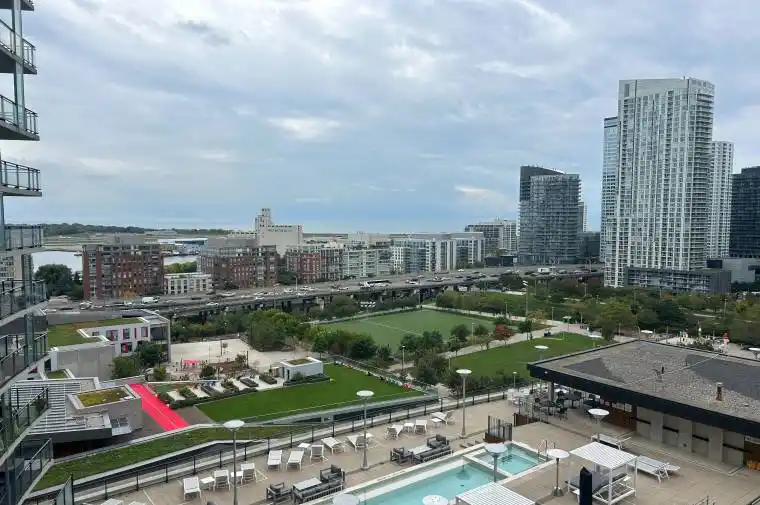 Live and work in the heart of downtown Toronto at the highly desirable Luna Condos (CityPlace). Smart and functional 2-bedroom, 2 bathroom, 750 sq ft plus 90 sq ft balcony comes with parking. Completely renovated October 2024 including new stainless-steel appliances (oven and microwave are smart appliances), both heating and ac units (Google nest thermostats) are also Internet connected, new flooring, repainted, new light fixtures just steps from everything including streetcar, supermarkets (Sobeys, Farmboy, Loblaws), restaurants, shopping mall (THE WELL), Rogers Center, fitness studios and the waterfront. Amenities: Fitness centre, yoga/dance studio, sauna, party room, rooftop pool, outdoor lounge with BBQ area, kids playroom, guests suites and visitor parking. All utilities included except hydro. This sunny condo is ready to move in December 1st.