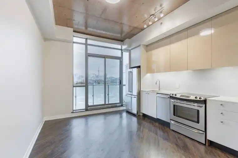 Bright And Airy Open-Concept Layout Featuring Wall-To-Wall, Floor-To-Ceiling Windows That Flood The Space With Natural Light. Enjoy A Sleek Contemporary Kitchen With Stone Countertops, A Generously Sized Bedroom With Ample Closet Space Featuring A Built-In Organizer, And Stylish Touches Like Modern Light Fixtures And Exposed Concrete Ceilings. Additional Highlights Include Convenient In-Suite Laundry, Custom Window Coverings, A Private Security System, And A Spacious Balcony With Stunning, Unobstructed City Views. Located In Toronto’s Vibrant Little Portugal Neighborhood, Just Steps From TTC, Trendy Shops, Dining, And More! With A Walk Score Of 99, Its A True Walkers Paradise! Pets Not Preferred. **EXTRAS: **Appliances: Fridge, Stove, Dishwasher, Washer and Dryer **Utilities: Heat & Water Included, Hydro Extra **Parking: 1 Spot Included **Locker: 1 Locker Included