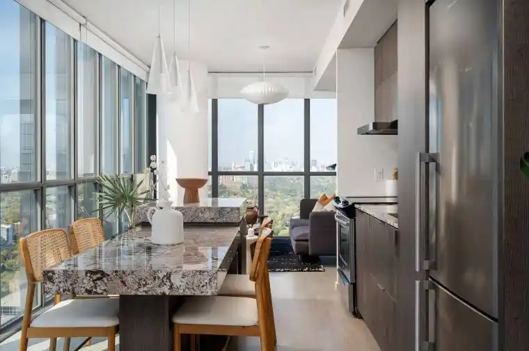 Tall, bright, and handsome, this sophisticated swooner will not take no for an answer, and will not disappoint. X2 — two kisses from Charles: he’s truly in charge here. Breathtaking views surround you in this stately stunning corner apartment: a living painting, a landscape and skyline that is always reinventing itself. The long gorgeous open concept kitchen means you can stay part of the conversation, while preparing a 3 Star Michelin worthy meal and keep your guests cocktails topped off with ease. Chefs kiss! After dinner the living room beckons for binge watching, relaxing, and watching the sun set in the western sky from 40 floors above street level: all at the same time. Floor to ceiling windows along two sides give this well-appointed gent an easy confident airiness and such great natural light you may never have to turn a light on until dusk. Generous bedrooms, two bathrooms, and a welcoming outdoor terrace, the winning just keeps coming. Being in the heart of downtown but feeling the calm and quiet of this unit is an amazing combination. Take advantage of the buildings gym, rooftop deck and outdoor pool, concierge services and visitor parking. Get on a first name basis with Charles immediately: youll be calling him home in no time.