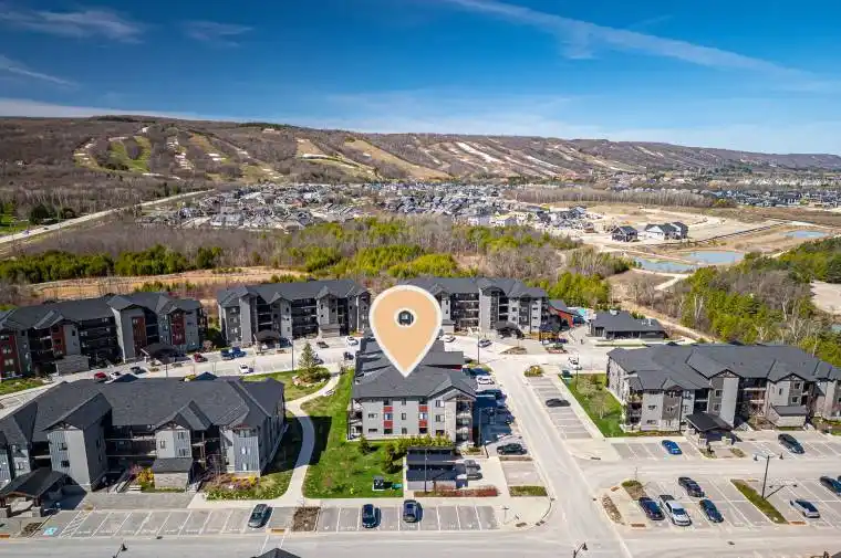 Welcome to Mountain House at Blue Mountain! This modern furnished 2 bedroom / 2 bathroom ground floor end unit is located in the Affinity building. The unit features an open concept living, dining and kitchen area with large sliding doors that lead to the covered patio. This unit is the perfect space for outdoor enthusiasts, offering room for your gear in the walk-in laundry closet and an in-suite storage room. Plus, with access to the nordic-style Zephyr Springs, you can enjoy outdoor pools, a relaxation/yoga room, sauna, and gym. If youre looking for a space to unwind and relax, head over to the Apres lounge, which features a communal sitting area with a fireplace and television, kitchen, and outdoor wood burning fireplace. When you’re ready to explore, walk to the award-winning Scandinave Spa, hop on the trails and bike to the amenities of Blue Mountain Village and Resort, or drive just minutes to Craigleith, Northwinds Beach, and the shops, restaurants, and amenities of Collingwood. Enjoy the convenience of being just 5 minutes to Blue Mountain ski slopes! Furniture is included!