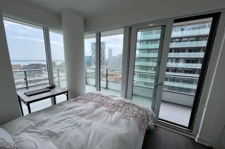 ***Lake view***only 2nd bedroom for lease which is part of Functional 2+Den and 2 Bath South West corner unit 850Sq.Ft. +310 Sq.Ft. Balcony! 2nd bedrm shared 3Pc Bathrm with other **girl** , 2nd Bedrm has lakeview, S/W Exposure with lake view and city view. Laminate Floor Throughout, W/O to Balcony from Living, Kitchen, Kitchen with Stainless Appliance, Steps To Distillery District, TTC, St Lawrence Mkt & Waterfront! Excess Of Amenities Including Infinity-edge Pool, Rooftop Cabanas, Outdoor BBQ Area, Games Room, Gym, Yoga Studio, Party Room And More! share Locker with other two women.