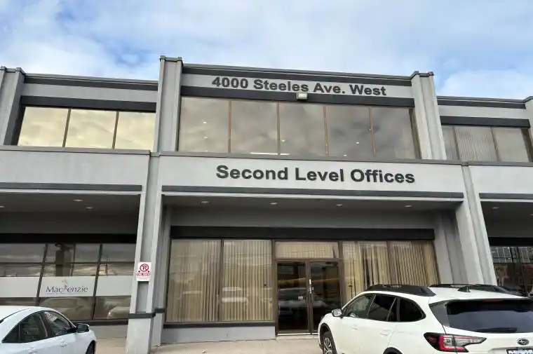 Professional office space available for lease on the second floor of a well-maintained building at 4000 Steeles Ave West. This private and functional 350 sq.ft. space is ideal for professionals or small businesses seeking a convenient and accessible location. The building offers a clean, professional environment with shared washrooms, ample unreserved parking and easy access to Highways 400, 407, and public transit. Perfect for accountants, consultants, or service-based businesses looking for a private and efficient workspace in a prime commercial area.