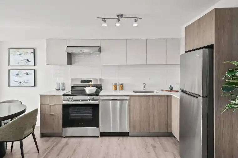 The Rose at The Manett is a thoughtfully designed 1-bedroom plus den suite with 749 square feet of interior living space and a 116 square foot balcony. The open-concept layout is filled with natural light, featuring oversized windows, durable vinyl plank flooring, and a modern kitchen with quartz countertops, sleek cabinetry, and stainless steel appliances. The spacious bedroom includes a full-size closet, while the versatile den is ideal for a home office or guest space. A stylish 4-piece bathroom, in-suite laundry, and individually controlled heating and cooling provide everyday comfort. With access to premium amenities including a fitness centre, social lounge, landscaped courtyard, bicycle storage, underground parking, and on-site management, plus a location close to Koretz Park, schools, shopping, restaurants, and Mount Pleasant GO Station, The Rose offers the perfect mix of convenience and modern living. ***Promotion: Don’t Pay Rent until 2026! PLUS: a $250 Amazon gift card!***