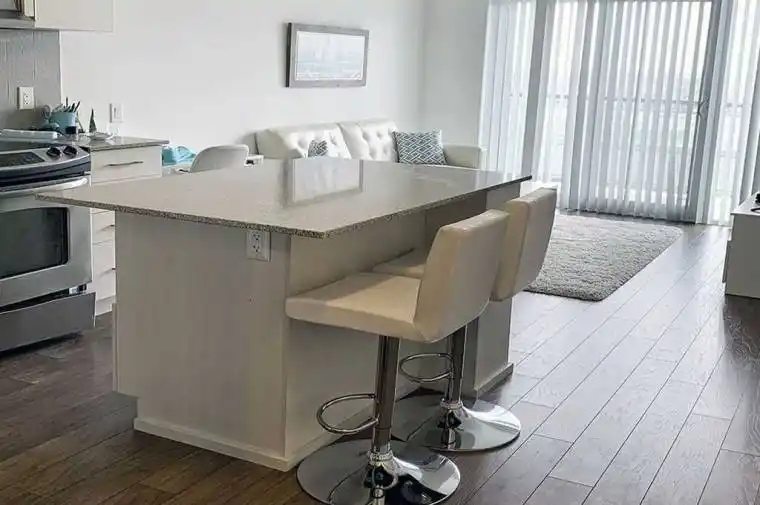 Beautifully Furnished One Bedroom + Den Condo In Excellent Mississauga Location. Laminate Flooring Throughout, Modern Kitchen With S/S Appliances, Quartz Counter Top And Centre Island. Master Suite With His And Her Closets And Is Attached To Bathroom. Den Easily Used (And Set Up As) A 2nd Bedroom, Having A Separate Access To Bath. Bonus Large Balcony With Lovely City View! Building Amenities Include Gym, Yoga, 24 Hr Concierge, Security. All Steps To Mall, Park And Hospital. Very Close To 403 And Go Bus Terminal.