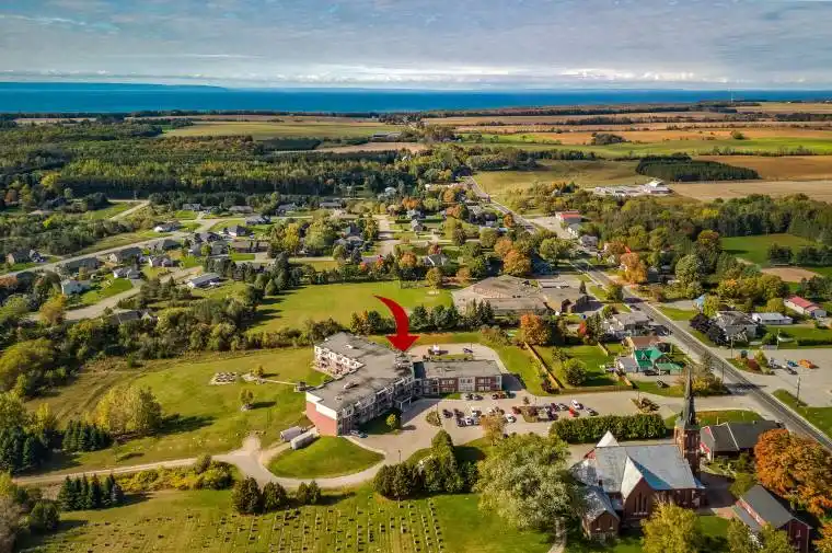Welcome to easy, comfortable living in this 55+ life lease community, set on 41 peaceful acres in the hamlet of Lafontaine. This bright third-floor unit features a spacious layout with two bedrooms, a 4-piece ensuite and walk-through closets, a 3-piece main bath, and convenient in-suite laundry. The west-facing orientation fills the home with warm daylight, and a walkout from the living area leads to a private balcony, an ideal spot to relax and enjoy the calm surroundings. Residents appreciate a relaxed way of life with no outdoor maintenance, along with a variety of social and recreational amenities. Beautifully landscaped grounds, scenic walking trails, and a lively main lounge create inviting spaces to connect with others. An exercise and games room supports an active lifestyle, whether you enjoy fitness, puzzles, or friendly gatherings. Additional conveniences include a conference area with a kitchen, balconies with great views, hairstyling services, meal delivery options, visitor parking, and a hotel-style guest room for overnight visitors. Just minutes from the sandy shores of Georgian Bay, this community offers a peaceful setting with plenty to enjoy both indoors and out.