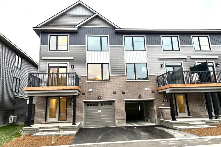 Welcome to this brand-new executive end-unit townhome by Minto – the Dawson End model – offering 1,530 sq ft of stylish living space. This modern, bright, and spacious home features 3 bedrooms, 1.5 baths, and a generous ground-level den, perfect for a home office or family room.The open-concept second level showcases a large dining area and living room, a contemporary kitchen with stainless steel appliances, quartz countertops, and a well-sized breakfast area filled with natural light from oversized windows and a patio door. Enjoy outdoor living on the expansive balcony off the main floor or relax on the inviting ground-level porch.Upstairs, the primary bedroom and two additional bedrooms share a full bathroom, which includes a large closet and a sleek shower. Additional highlights include in-unit laundry, an attached garage with inside entry, a garage door opener, and central air conditioning.Ideally located near top-rated schools, parks, shopping, public transit, and just minutes from the Kanata High Tech Park. Available immediately-move in and be the first to call this beautiful home your own! Rental application requirements: employment letter, three most recent pay stubs, full credit report, rental application, and photo ID. Note: Appliances will be installed at the beginning of December.