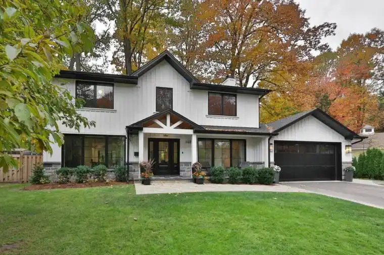 Modern Farmhouse Elegance in Lorne Park! Set on an expansive pie-shaped lot, this home has been completely renovated throughout, offering over 4,100 sq ft of refined living space. Features include 9″ white-oak floors, shiplap detailing, and a stunning open-concept layout with a quartz kitchen and oversized centre island overlooking the family room with gas fireplace and beamed ceiling. Upstairs offers a serene primary suite with spa-inspired ensuite plus three additional bedrooms with designer finishes. The finished lower level adds a chevron-pattern laundry, built-in workspace, and bath. The oversized garage showcases an epoxy floor, slat wall system, and built-in cabinetry. Covered cedar porch and exterior cameras complete this exceptional home steps to top Lorne Park schools and waterfront trails.